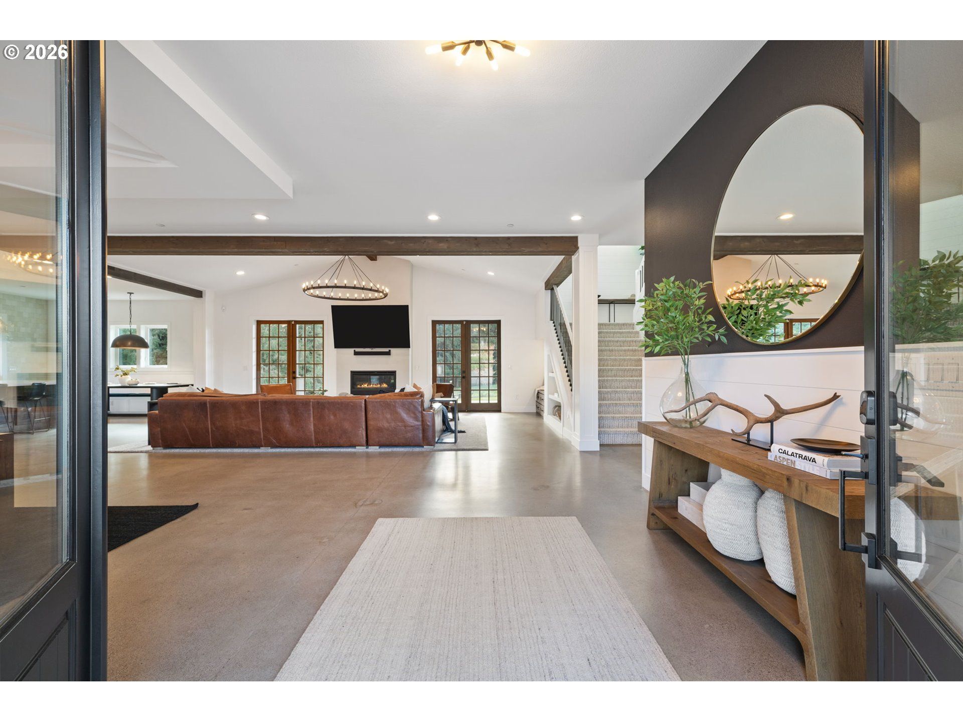 Set on 10 private acres, this high-efficiency, custom-built elevated farmhouse-inspired estate offers a rare blend of space, sophistication, and serenity. With 7 spacious bedrooms, a dedicated home office, and a bonus room, the residence is designed to accommodate both expansive living and modern work-from-home needs.From the moment you arrive, the property makes a statement-expansive grounds, manicured landscapes, and a sense of privacy, enhanced by professional landscaping with lighting and a tranquil water feature. Inside, refined finishes and thoughtful design flow throughout, with generous living areas, high ceilings, and abundant natural light creating an inviting yet elevated atmosphere. The gourmet kitchen is thoughtfully appointed with high-end appliances, ample workspace, and elegant finishes-ideal for both everyday living and effortless entertaining. A large walk-in pantry includes a commercial dishwasher, adding convenience and functionality for gatherings. The main level features heated concrete floors throughout, along with two powder baths and a well-designed layout that includes the primary suite and an additional bedroom currently used as a homeschool classroom. The primary ensuite is located on the main level and includes washer/dryer hookups for added ease.Upstairs, heated high-performance laminate flooring runs throughout, along with a second laundry area, four additional bedrooms, a bunk/guest suite, a bonus space, and three full bathrooms-providing flexibility and comfort for a variety of living arrangements. Outdoors, the setting is designed for memorable gatherings and relaxed evenings-enjoy dinners al fresco on covered front and back patios, unwind around the firepit under the stars, and take advantage of dedicated grilling areas perfect for hosting with ease. With no HOA, there's ample space to bring your toys, boats, and RVs. A prepared pad with electrical is already in place for a future shop or barn. Owned, high-tech security system.