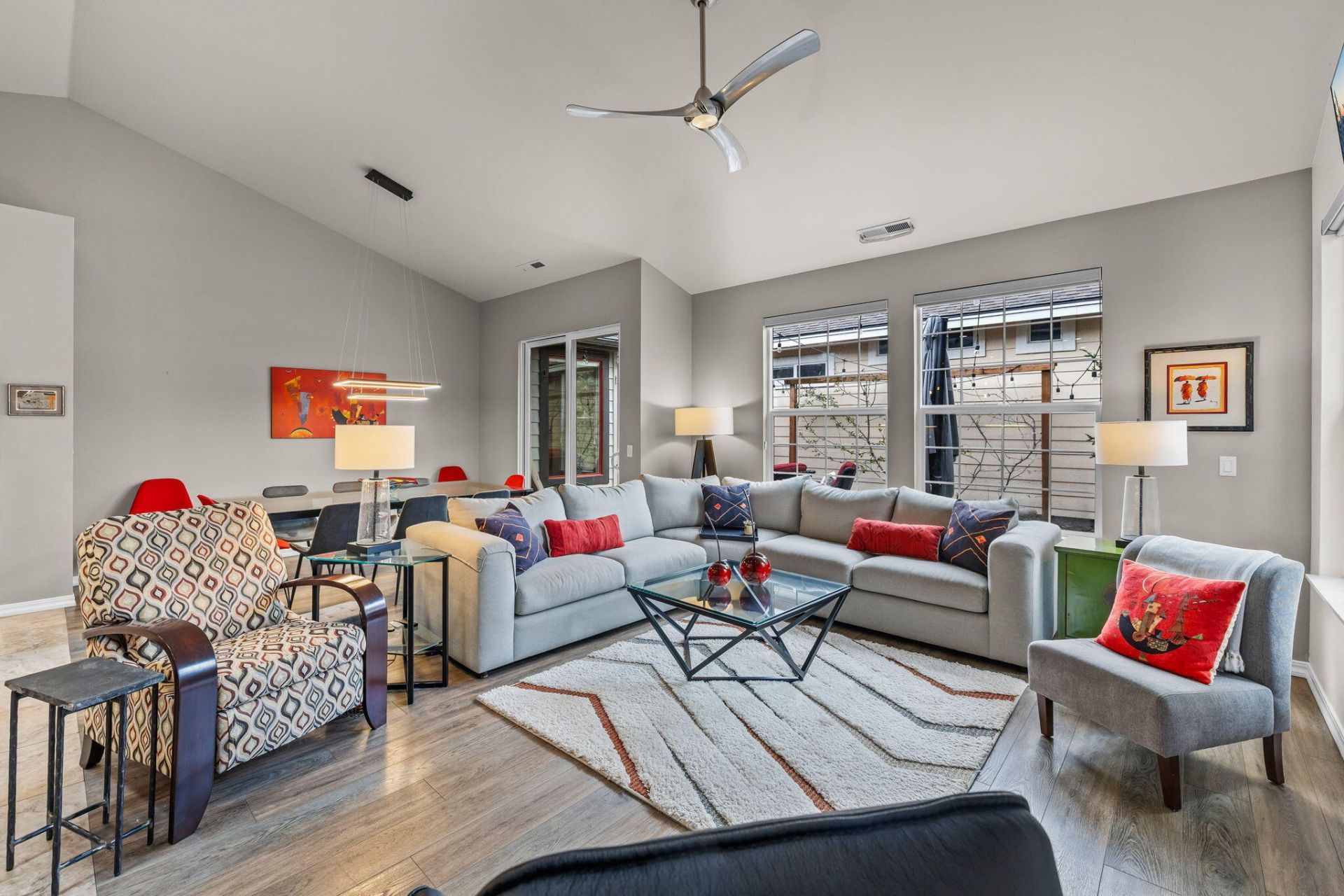 Looking for the perfect easy to lock/leave second home or downsize home? Opportunity & elegant living await in the heart of Bends westside at the Parks! This charming single level perfectly blends pride of ownership, tasteful finish work & recent remodel updates. Tall ceilings and smart design allow the home to live large & maximize its sq. footage while capturing incredible natural light through its any oversized windows. Highlights include trendy tile work, durable laminate wood floors, spa like primary suite (w/heated bathroom floors), dedicated office space & open great room style floor plan. Enjoy a fully fenced low maintenance paver side patio & elevated views/privacy over the community park across the street. Enjoy a community pool, trails, and being moments from schools & westside amenities. This home is turn key and perfectly blends easy maintenance & elegance!
